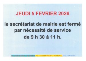Fermeture du secrétariat jeudi 5 février