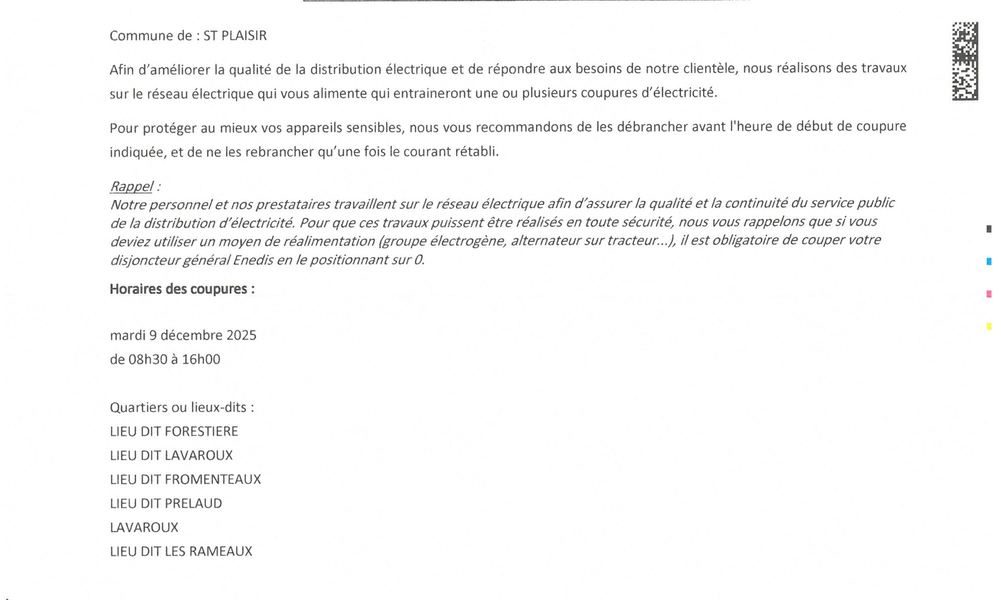 COUPURE DE COURANT ANNONCÉE POUR CERTAINES ADRESSES